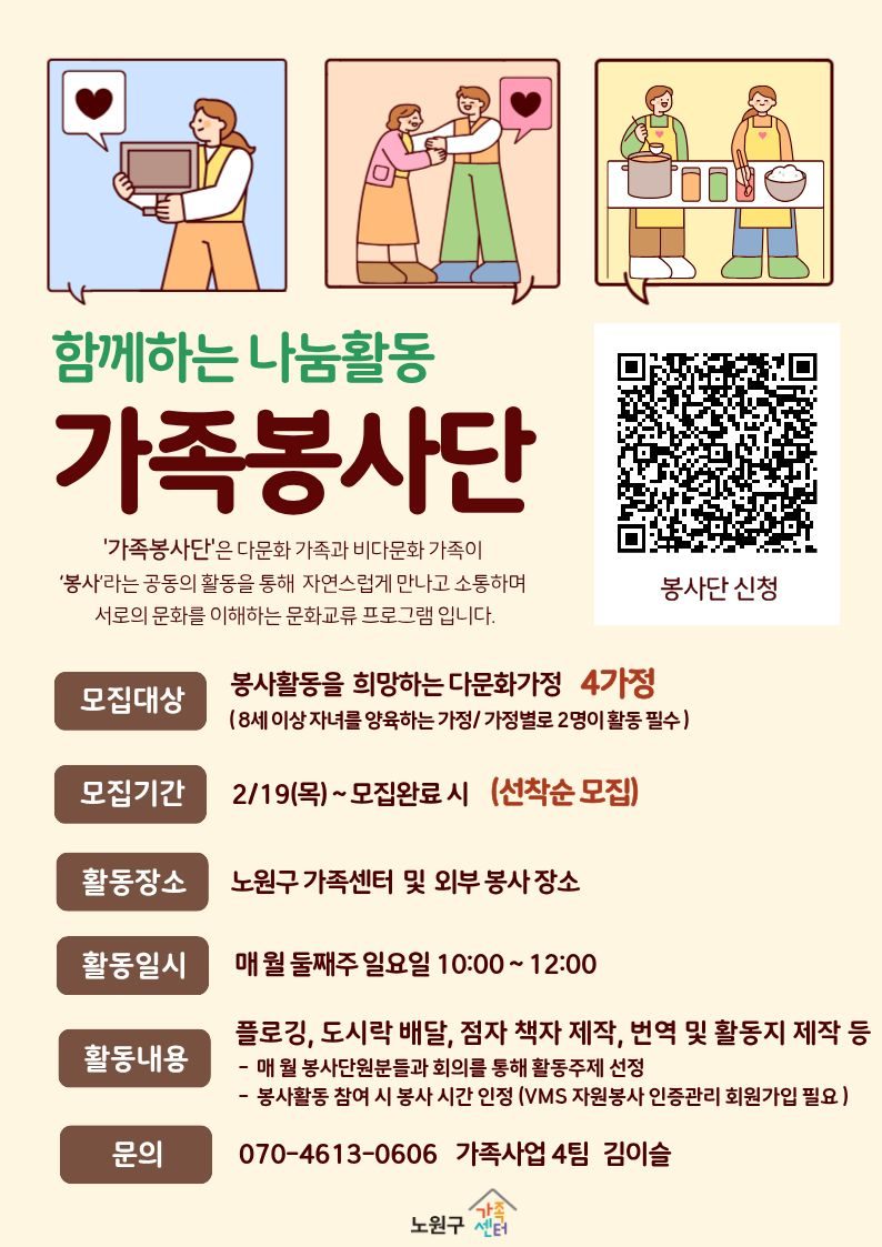 - 신청 : https://nowon.familynet.or.kr/web/lay1/program/S1T304C450/recruitReceipt/view.do?seq=245345&progNm=%EA%B0%80%EC%A1%B1%EB%B4%89%EC%82%AC%EB%8B%A8