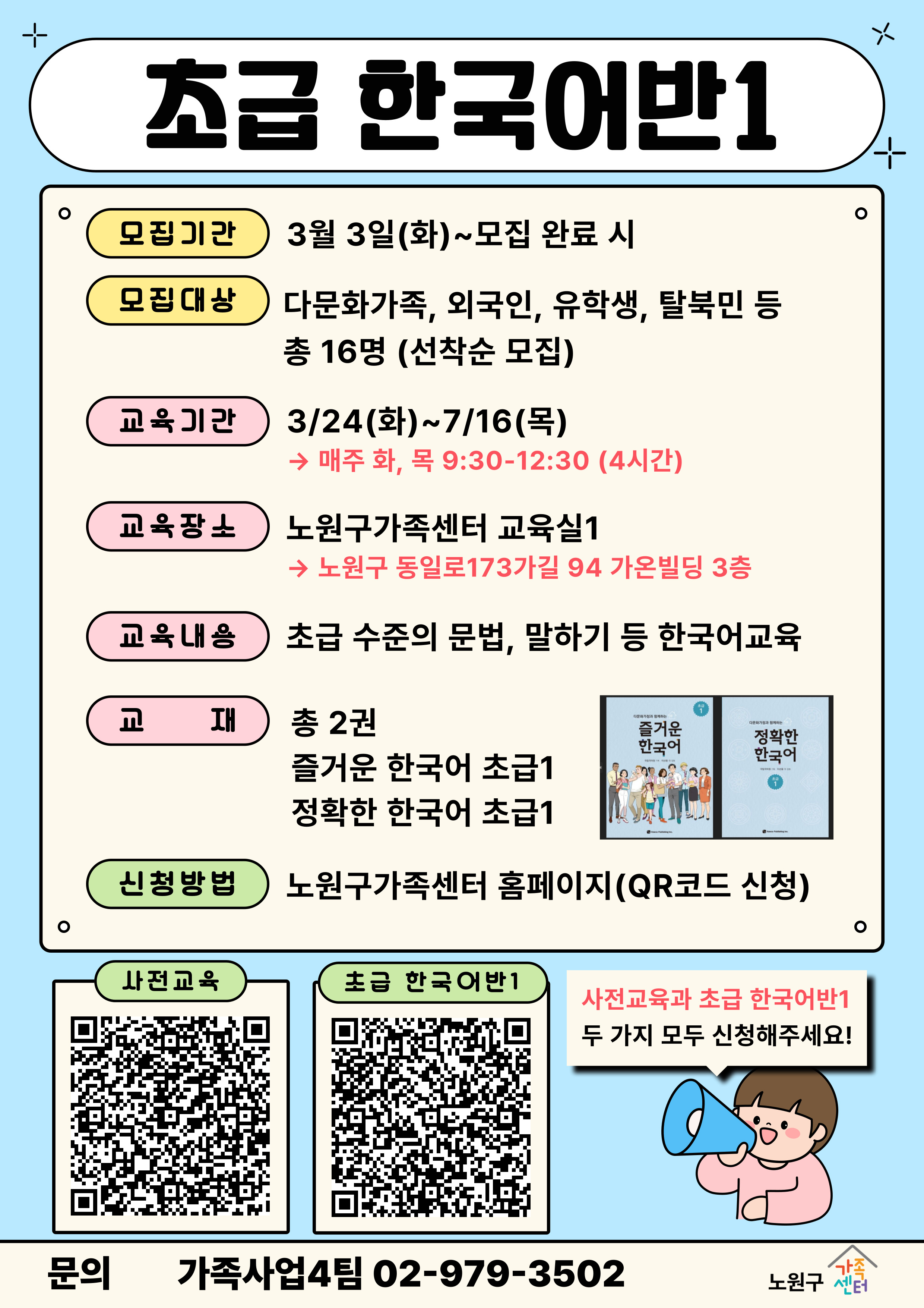https://nowon.familynet.or.kr/web/lay1/program/S1T304C450/recruitReceipt/view.do?seq=249053&progNm=%ED%95%9C%EA%B5%AD%EC%96%B4%EA%B5%90%EC%9C%A1%20%EC%B4%88%EA%B8%89%ED%95%9C%EA%B5%AD%EC%96%B4%EB%B0%981