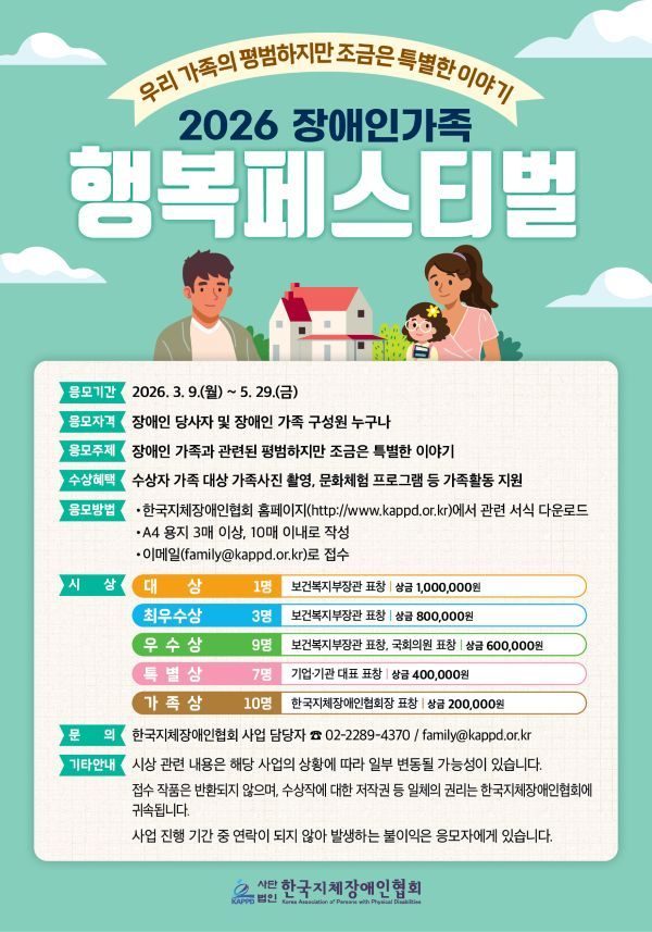 「장애인가족행복페스티벌」을 진행하오니 적극적인 관심과 참여 부탁드립니다.